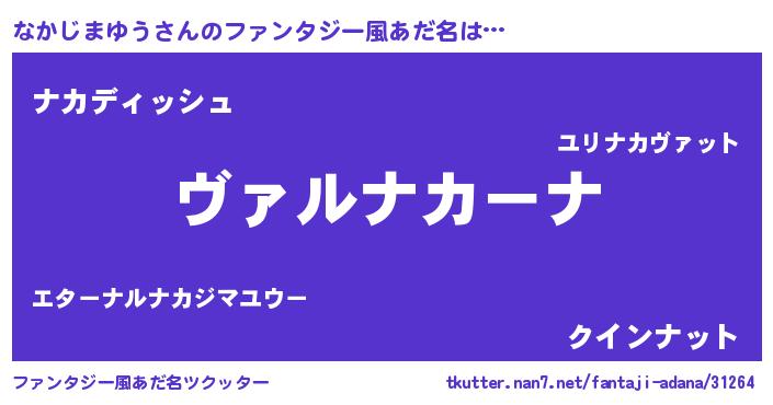 | 男性向けラノベタイトル風あだ名 | 『魔弾の王となかじまゆう』 |