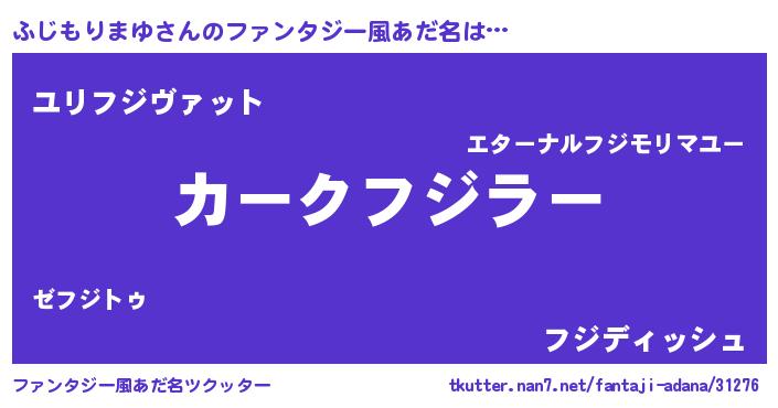 | 欧米人風あだ名 | 『ふじもりまゆ・ステッグマイヤー』 |
