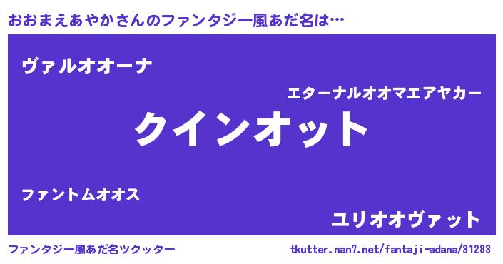 | 男性向けラノベタイトル風あだ名 | 『ノーゲーム・ノーオオマエアヤカ』 |