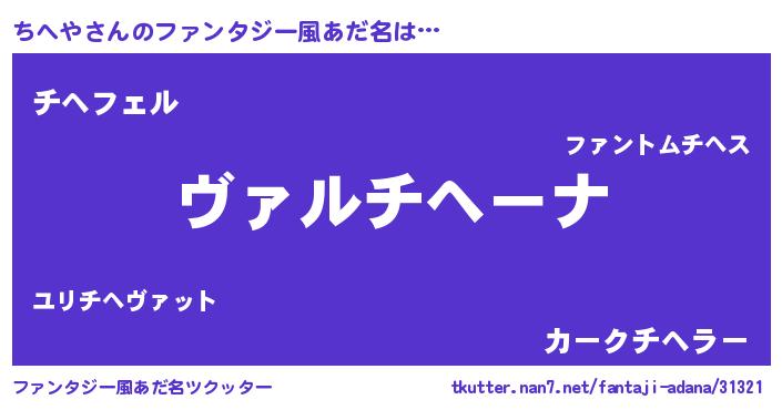 | 意味不明あだ名 | 『住所不定無職ちへや(91歳)』 |