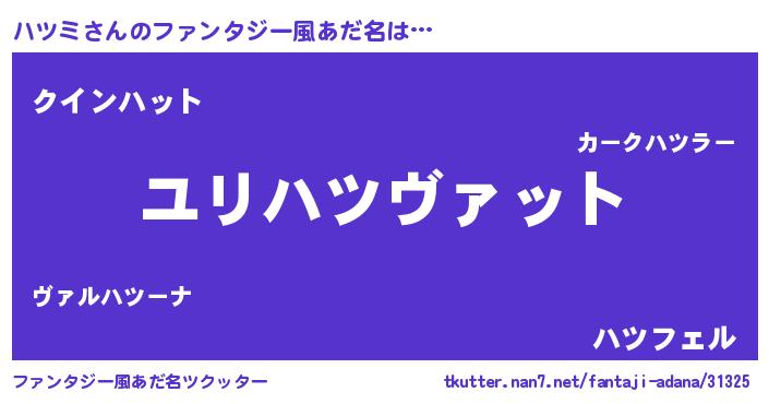 | 欧米人風あだ名 | 『アンジェラ・ハツミ』『ダニエルハツミ』 |