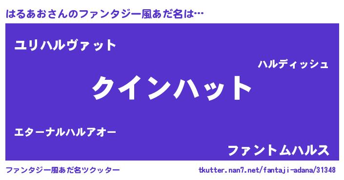 | 男性向けラノベタイトル風あだ名 | 『おまえをオタクにしてやるから、俺をはるあおにしてくれ! 』 |
