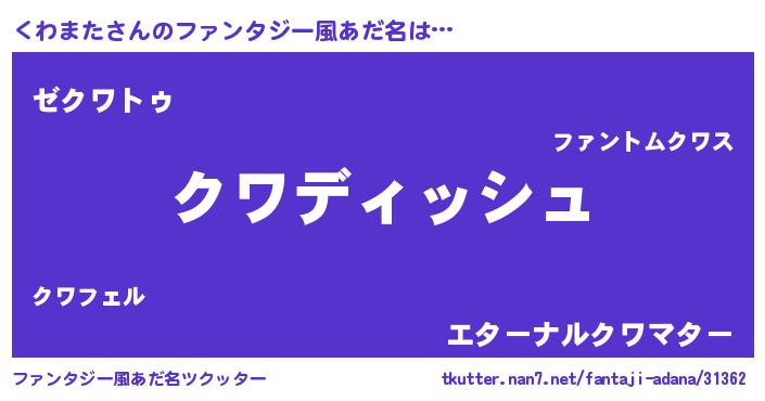 | 意味不明あだ名 | 『永久保存くわまた』『自称くわまた』 |