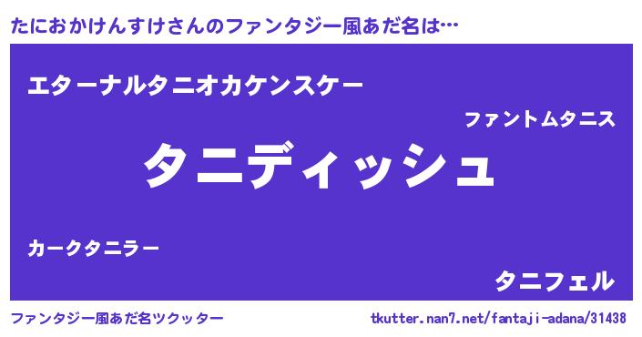 | 女子向けラノベタイトル風あだ名 | 『異世界で失敗しない100のたにおかけんすけ』 |