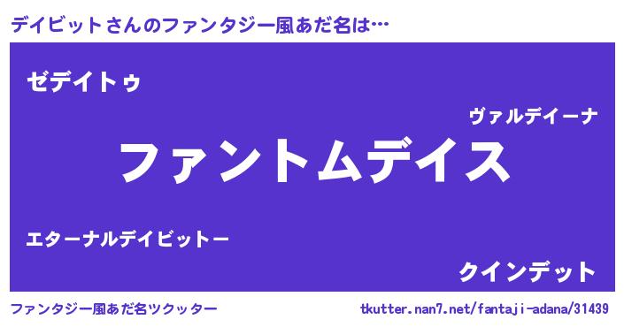 | ヒーロー風カッコイイあだ名 | 『黄金騎士デイ』『最強戦士デイビット』 |