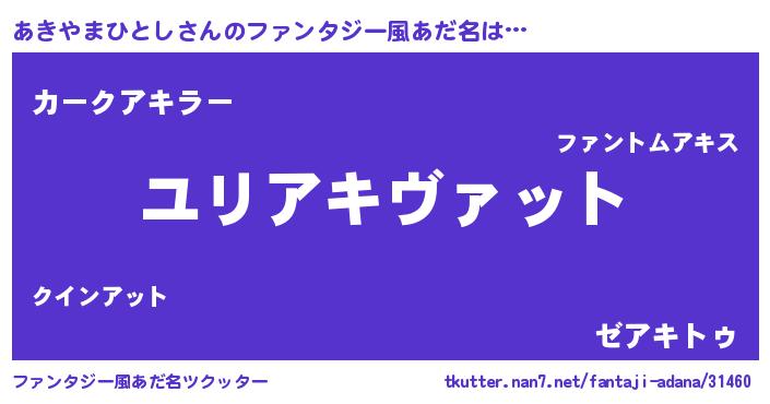 | 男性向けラノベタイトル風あだ名 | 『アキヤマヒトシスレイヤー』 |