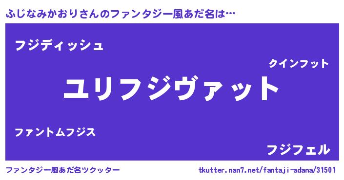 | 男性向けラノベタイトル風あだ名 | 『ふじなみかおり~年齢イコール彼女いない歴の魔法使い~』 |