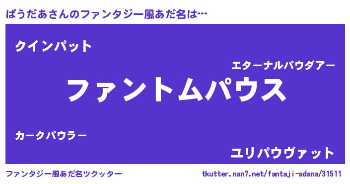 | 女子向けラノベタイトル風あだ名 | 『ぱうだあの卵を拾いまして』 |