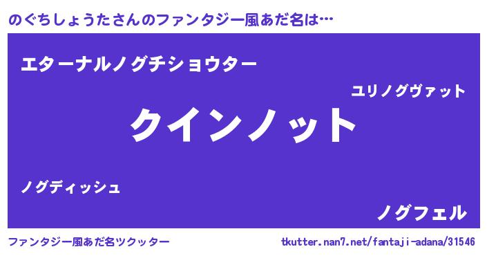| 男性向けラノベタイトル風あだ名 | 『おまえをオタクにしてやるから、俺をのぐちしょうたにしてくれ! 』 |