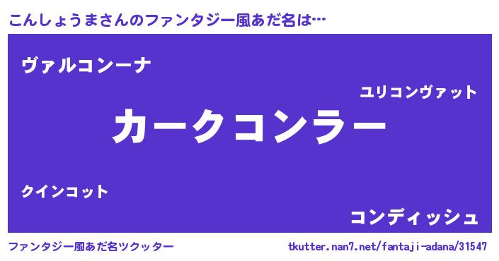 | 男性向けラノベタイトル風あだ名 | 『緋弾のコンショウマ』 |