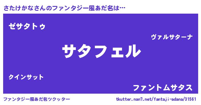 | ヒーロー風カッコイイあだ名 | 『スーパーサタケカナ』『暗黒騎士サタ』 |