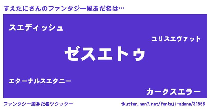| ポケモン風あだ名 | 『スエセウス』『ゼニスエ』 |