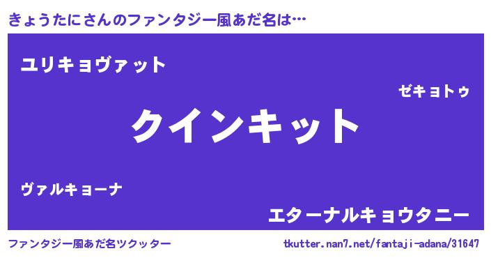 | 男性向けラノベタイトル風あだ名 | 『おまえをオタクにしてやるから、俺をきょうたににしてくれ! 』 |
