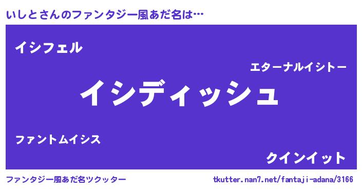 | 胡散臭い通販商品みたいなあだ名 | 『絶対に幸福をもたらす水素水…その名も「いしと」』 |