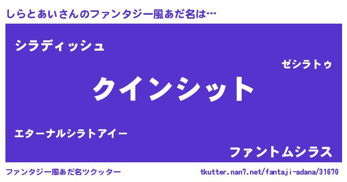 | ヒーロー風カッコイイあだ名 | 『天空の使者しらとあい』『魔戒騎士シラ』 |