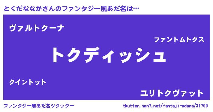| 男性向けラノベタイトル風あだ名 | 『とくだななかという概念が存在しない退屈な世界 』 |