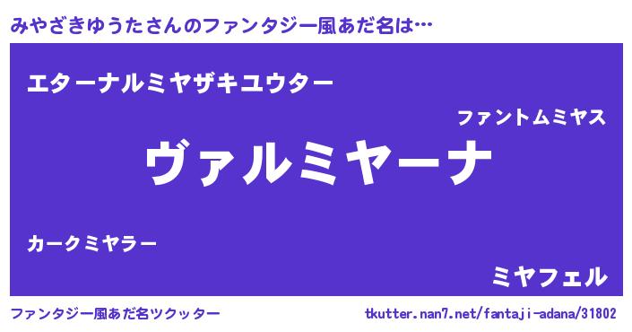 | 男性向けラノベタイトル風あだ名 | 『この素晴らしい世界にみやざきゆうたを!』 |