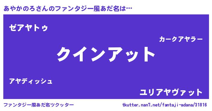 | ヒーロー風カッコイイあだ名 | 『慈愛の使者あやかのろ』『幻影騎士アヤ』 |