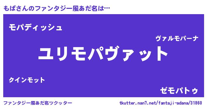 | ヒーロー風カッコイイあだ名 | 『ネオモパ』『究極戦士モパ』 |