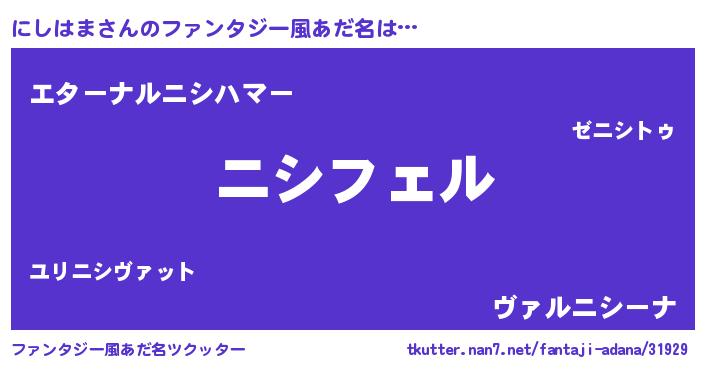 | 男性向けラノベタイトル風あだ名 | 『にしはまの憂鬱』『ニシハマスレイヤー』 |