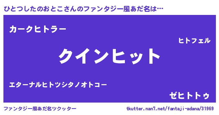 | 男性向けラノベタイトル風あだ名 | 『ノーゲーム・ノーヒトツシタノオトコ』 |