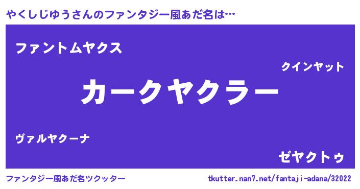 | 意味不明あだ名 | 『とにかく怪しいやくしじゆう』 |