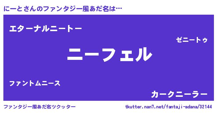 | 胡散臭い通販商品みたいなあだ名 | 『億万長者になれる霊験あらたかなお札…その名も「にーと」』 |