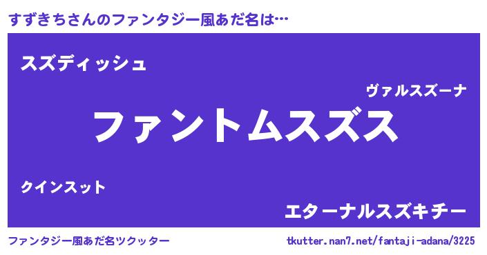 | 男性向けラノベタイトル風あだ名 | 『ダンジョンにすずきちを求めるのは間違っているだろうか』 |