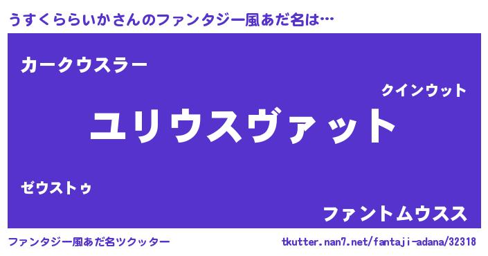 | 欧米人風あだ名 | 『トリンドルうすくららいか』 |