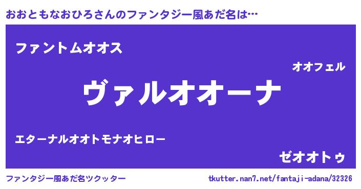 | 男性向けラノベタイトル風あだ名 | 『魔弾の王とおおともなおひろ』 |