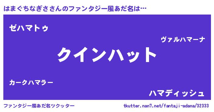 | 男性向けラノベタイトル風あだ名 | 『おまえをオタクにしてやるから、俺をはまぐちなぎさにしてくれ! 』 |