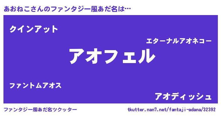 | ヘコむあだ名 | 『あおふぇ~』『あおねこ(爆)』 |