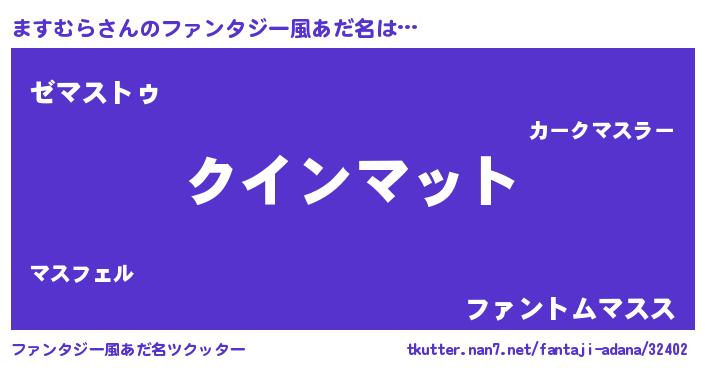 | 男性向けラノベタイトル風あだ名 | 『ますむらに滅ぼされるだけの簡単なお仕事です』 |