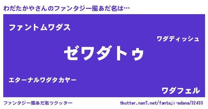 | ポケモン風あだ名 | 『ワダセウス』『ヒワダタカヤ』 |
