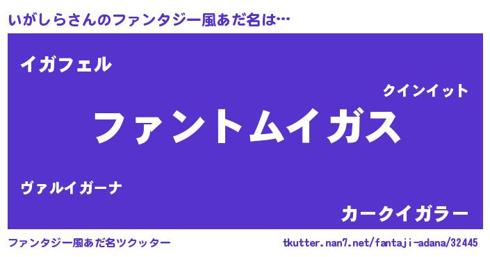 | ヒーロー風カッコイイあだ名 | 『幻影騎士イガ』『スーパーイガシラ』 |
