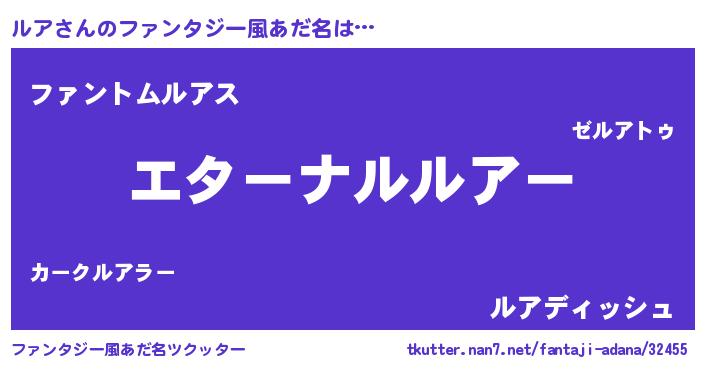 | ポケモン風あだ名 | 『ルアダネ』『ヒルア』『ゼニルア』 |