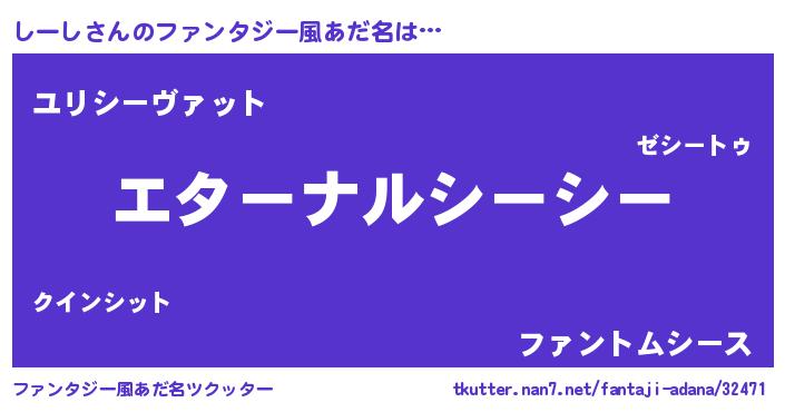 | ヒーロー風カッコイイあだ名 | 『ウルトラしーしマン』『幻影騎士シー』 |