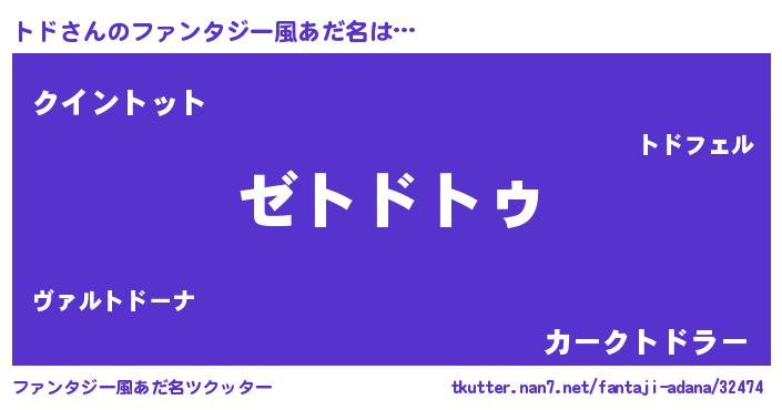| ヒーロー風カッコイイあだ名 | 『超時空戦士トド』『慈愛の使者トド』 |