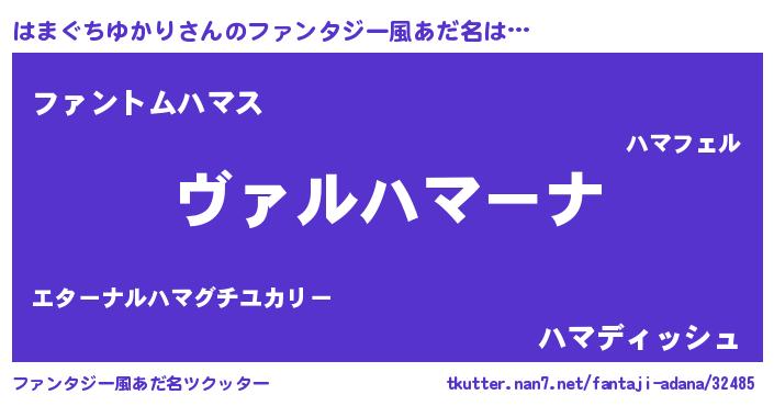| 男性向けラノベタイトル風あだ名 | 『この素晴らしい世界にはまぐちゆかりを!』 |