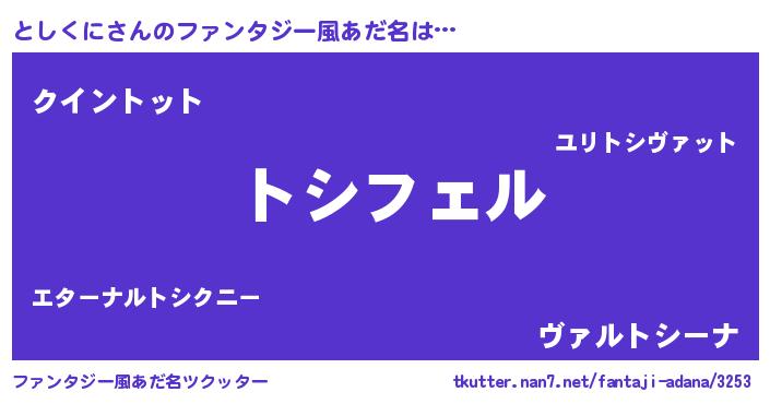| 自動車の名前っぽいあだ名 | 『トシティマ』『トンR』『ポトシェ』 |