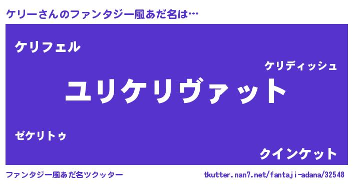 | 男性向けラノベタイトル風あだ名 | 『転生したらケリーだった件』 |