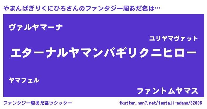 | 欧米人風あだ名 | 『やまんばぎりくにひろクリステル』 |