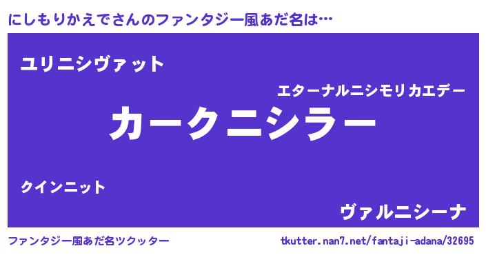 | 欧米人風あだ名 | 『にしもりかえで・ステッグマイヤー』 |