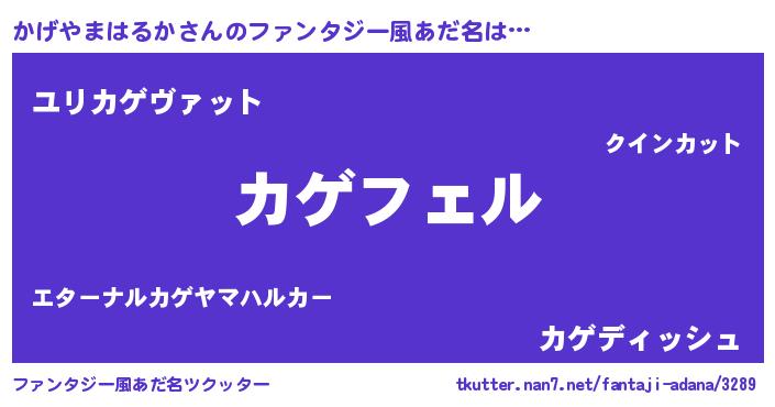 | 男性向けラノベタイトル風あだ名 | 『カゲヤマハルカアートオンライン』 |