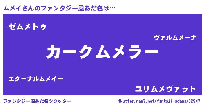 | 意味不明あだ名 | 『自称ムメイ』『めかぶ科ムメイ属』 |