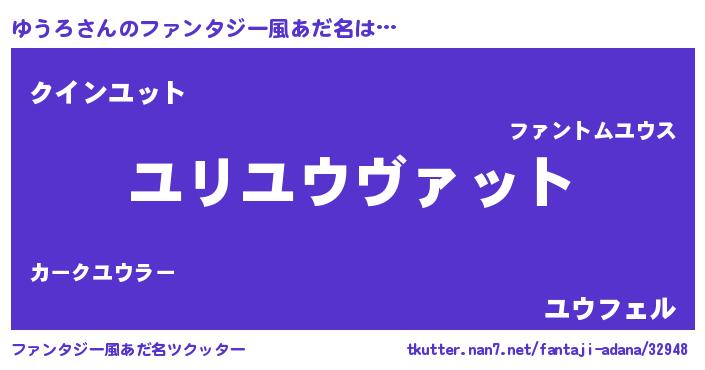 | 男性向けラノベタイトル風あだ名 | 『ゆうろ~年齢イコール彼女いない歴の魔法使い~』 |
