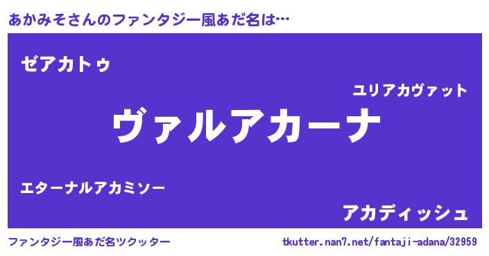 | 女子向けラノベタイトル風あだ名 | 『あかみそが死なない童話 林檎のあかみその診療簿』 |