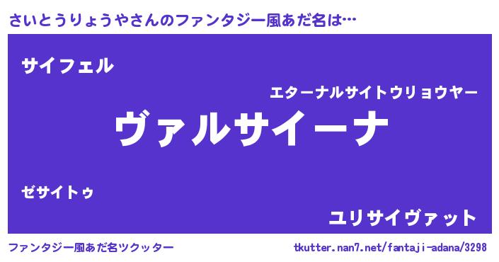 | 男性向けラノベタイトル風あだ名 | 『この素晴らしい世界にさいとうりょうやを!』 |