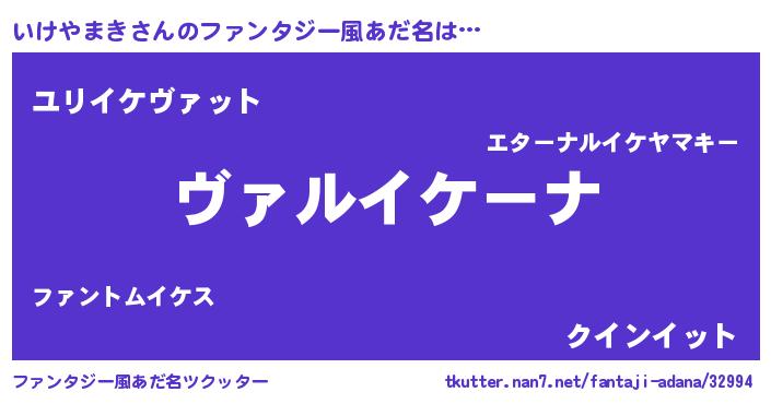 | 男性向けラノベタイトル風あだ名 | 『魔弾の王といけやまき』 |