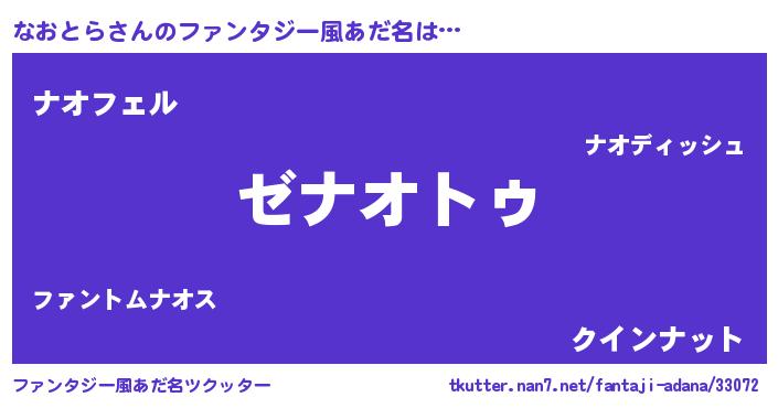 | 男性向けラノベタイトル風あだ名 | 『Re:なおとらから始める異世界生活』 |